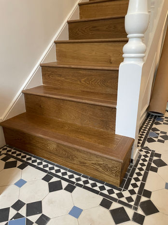 Enhance your staircase with our premium finishes expertly offered in London and Surrey. Whether you opt for solid or engineered wood, we provide precise color matching to your existing flooring or assist you in selecting the ideal hue for your new stairs. Each step is meticulously crafted professionalism and attention to detail, ensuring a sophisticated addition to your home. Allow us to help you realize your vision and elevate your space.